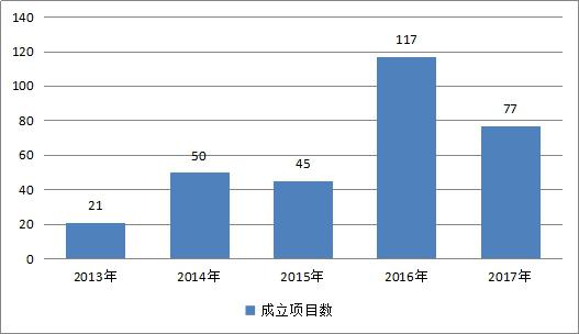 區(qū)塊鏈項目成立數(shù)量在2016年達到頂峰,在2017年出現(xiàn)一定回落。