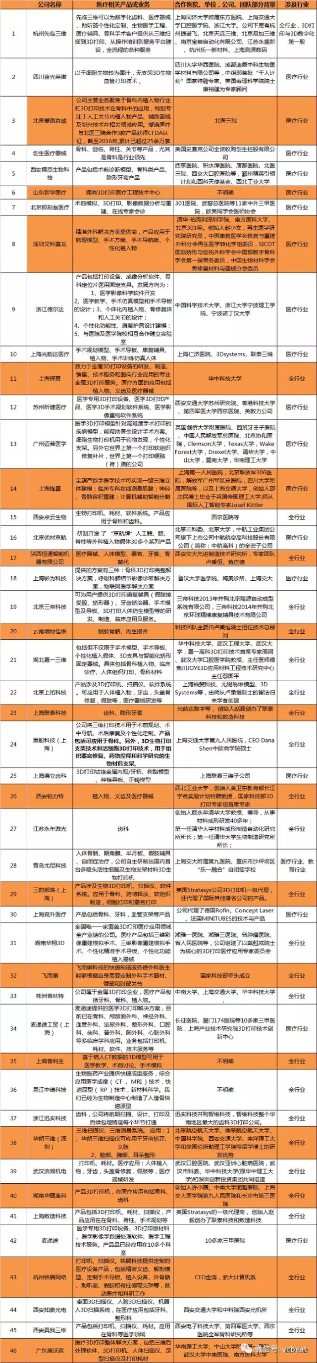 其中有26家是涉及全行業(yè)的,有20家是專門從事醫(yī)療打印的。這些企業(yè)的技術(shù)顧問(wèn)大多是由盧秉恒、戴尅戎兩位院士及其學(xué)生擔(dān)任,3D打印人才則來(lái)自清華、西交大、華中科技大等9大院校。
