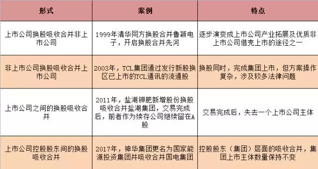 中國國電集團公司與神華集團有限責任公司的合并重組過程中,控股股東層面的集團吸收合并由神華集團來吸收合并國電集團,雙方集團均有A股上市的子公司,屬于上述第四種。