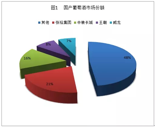 2000年開始,伴隨著新一輪消費升級大潮的來臨,葡萄酒行業(yè)進(jìn)入快速發(fā)展期。近年來,隨著消費者對葡萄酒的認(rèn)知出現(xiàn)變化,居民的消費能力也出現(xiàn)上升,葡萄酒市場出現(xiàn)良好的發(fā)展勢頭,國內(nèi)一批葡萄酒企業(yè)紛紛打響了自己的品牌。目前,在我國的500多家葡萄酒企業(yè)中,已經(jīng)形成了以張裕、王朝、長城等為龍頭的一線葡萄酒品牌。幾大品牌占據(jù)了國內(nèi)葡萄酒市場的大部分份額,集中度進(jìn)一步增大。其中,張裕、長城、王朝的葡萄酒產(chǎn)量,占全國葡萄酒總產(chǎn)量的50%左右(圖1)。同時張裕、長城和王朝的銷量占50%的市場份額。利潤總額更是占到行業(yè)的67%。王朝、張裕、長城三家國產(chǎn)品牌通過超市等多渠道的擴(kuò)張,已在國內(nèi)消費者心目中占據(jù)重要的位置。