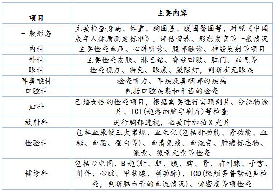 主要體檢項(xiàng)目